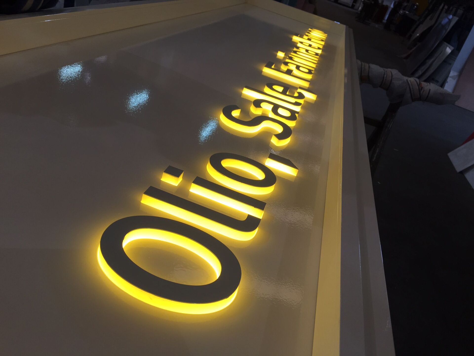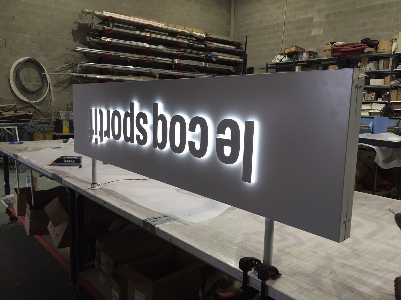 Rótulos con luz, realizados con módulos LED y frente rotulado de plexiglás PMMA.